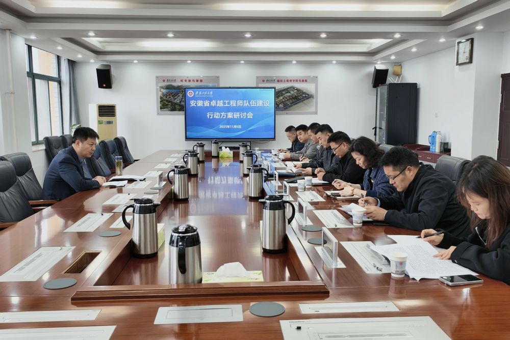 11月6日,学校在A座1213会议室召开安徽省卓越工程师队伍建设行动方案研讨会。校党委常委、副校长凤权出席并主持会议,相关职能部门和学院负责人参加会议。