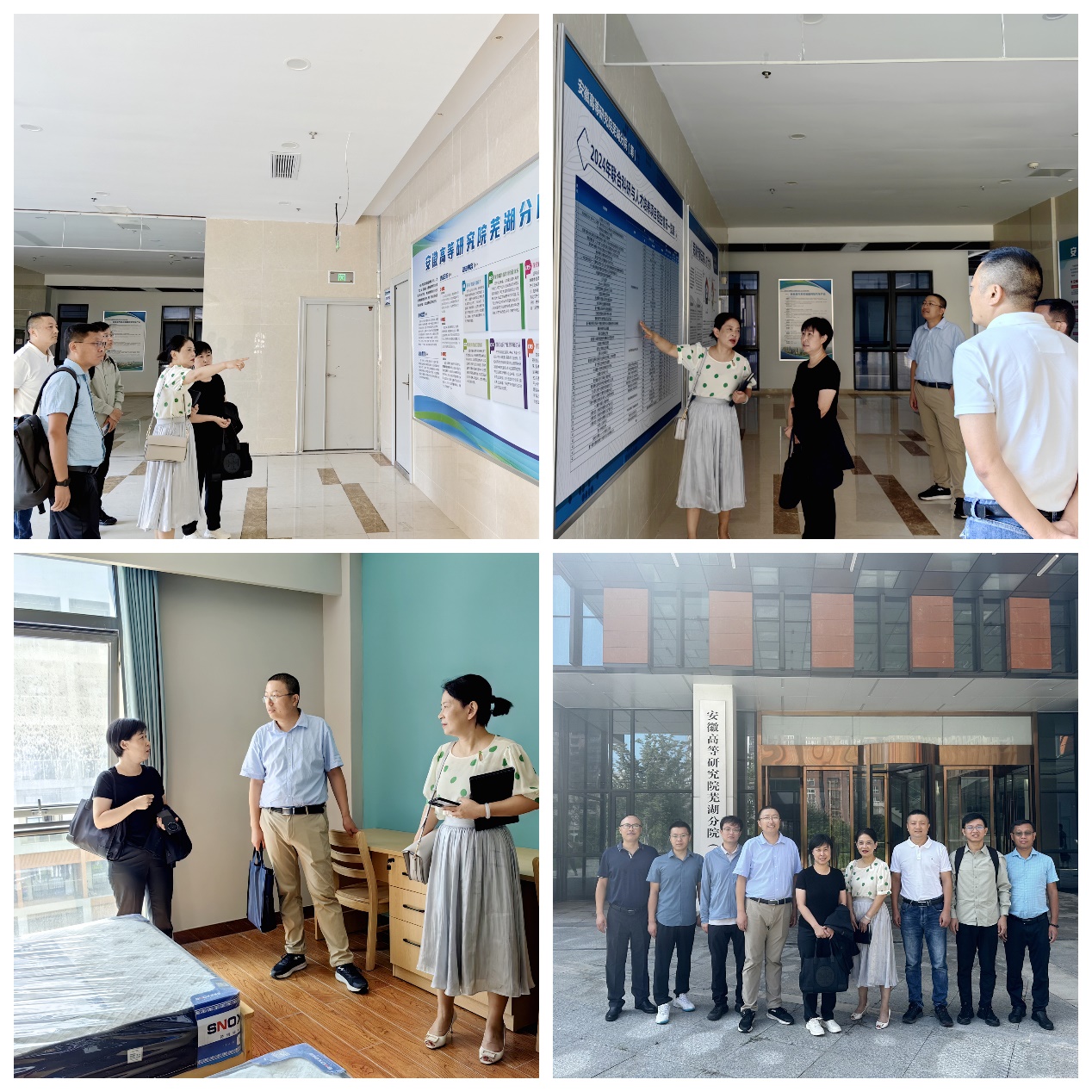会上,与会人员就高等研究院与高校的合作模式、学生管理与服务、项目遴选与筹划等方面工作进行了深入的交流。会后葛雯、潘家保陪同海南省教育厅一行人员参观芜湖分院工作场地和研究生公寓。