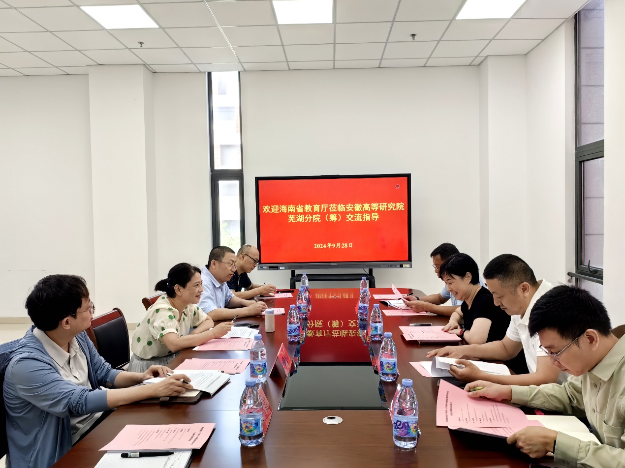 会上,与会人员就高等研究院与高校的合作模式、学生管理与服务、项目遴选与筹划等方面工作进行了深入的交流。会后葛雯、潘家保陪同海南省教育厅一行人员参观芜湖分院工作场地和研究生公寓。
